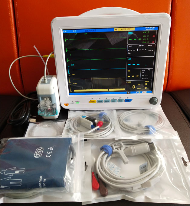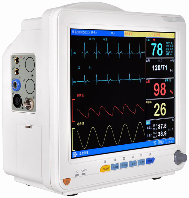 多參監(jiān)護儀采用進口原裝TFT高亮度真彩液晶屏,整機界面清晰直觀,體積小﹑重量輕。對于成人及兒童均適用,可同時連續(xù)地對患者的心電圖、心率、無創(chuàng)血壓(收縮壓、舒張壓及平均動脈壓力)、血氧飽和度、呼吸、體溫等重要體征參數進行監(jiān)護,同屏顯示心電波形﹑血氧波形﹑呼吸波形﹑血壓測量數據﹑血氧測量數據﹑心跳頻率﹑呼吸頻率﹑體溫等各類參數,對于心電和血氧等波形可實現波形數據回放,還具有顯示表格和圖形趨勢的功能,呼末CO2功能。